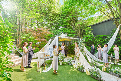 英国王立園芸協会「チェルシーフラワーショー」で金メダルの受賞歴を誇る庭園デザイナー・石原和幸氏がプロデュースしたプライベートガーデン。アットホームな空間で、おふたりの想いを込めた自由な演出をお楽しみいただけます。