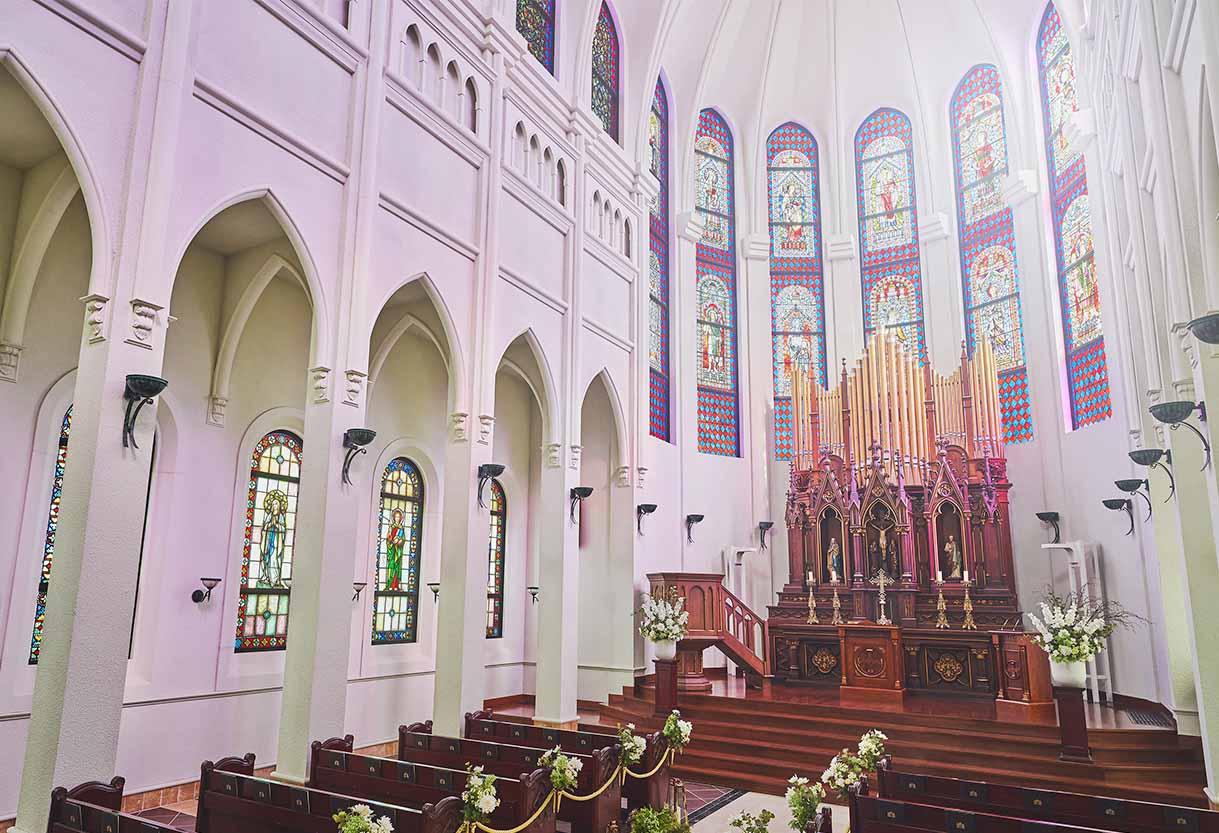 大聖堂や会場に映えるドレスで