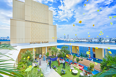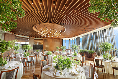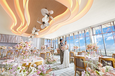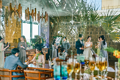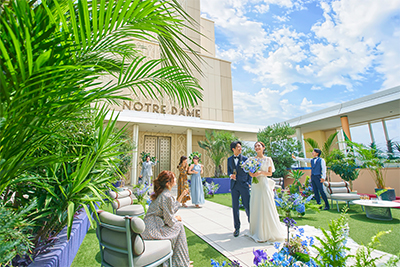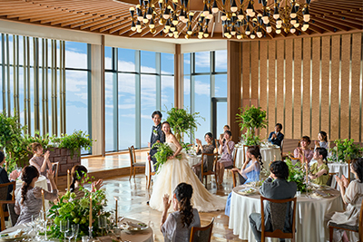 地上60mの屋上テラスは、空と海が広がる開放的な空間。光や風、緑の心地よさの中で行うアフターセレモニーは、ゲストの記憶に刻まれます。