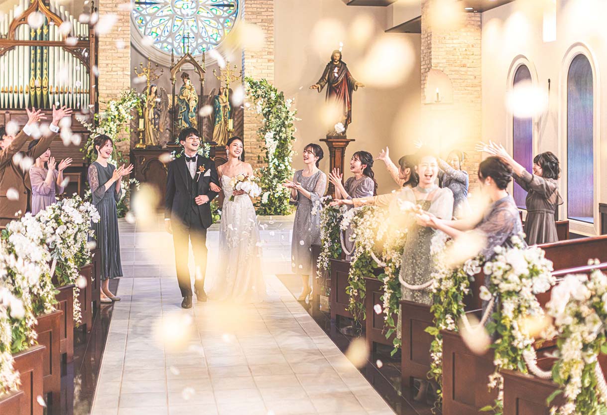 ゲストの祝福を浴びながらおこなう