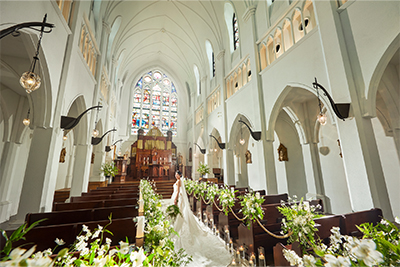 ベルギー・アントワープの世界遺産「ノートルダム大聖堂」から祝福を受けた、日本で数少ない由緒正しき大聖堂。高みから降り注ぐ祝福の光に満ちた幻想的な空間は、花嫁を美しく煌めかせます。