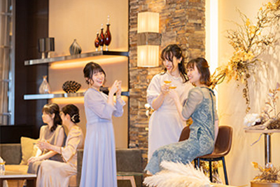 大切なゲストには、待ち時間を居心地よく過ごしていただける広々としたウエイティングスペースをご用意。それぞれのスタイルでリラックスできる空間をお楽しみいただけます。