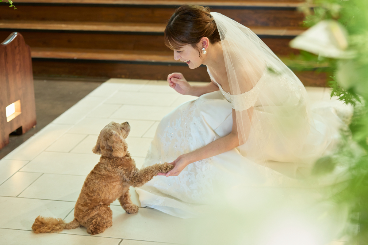 <ペットも主役のオリジナルW>当館でのリングドッグ、前撮り、ウエディングフォトなどペットと一緒に結婚式を行える式場|NotreDame SHUNAN★人数に応じてPLANをご準備させていただきます。