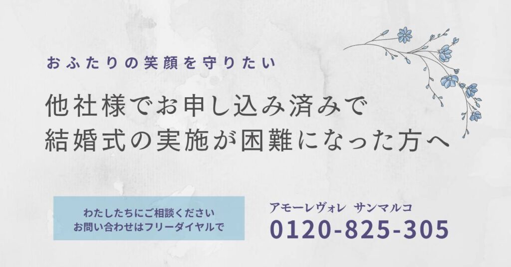 他社様にお申し込みをされていて、実施が困難になられたおふたりも、本当は挙げたいけど事情がおありのかたも、みなさん全力で応援いたします!