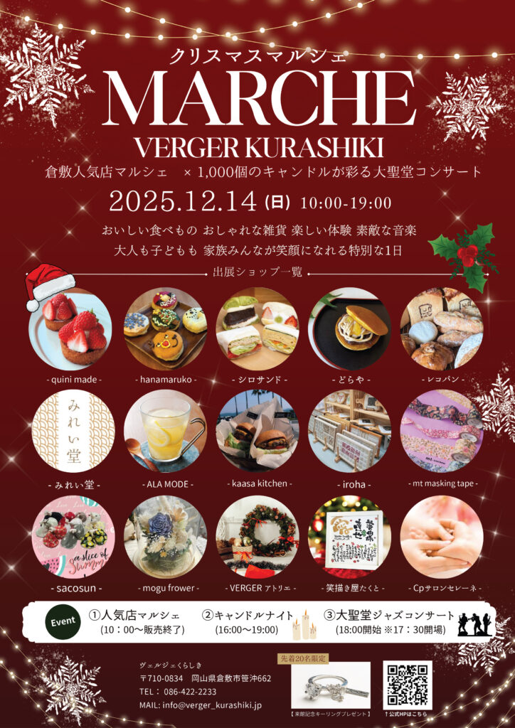 12/14は倉敷市の有名店にも参加いただいてのクリスマスマルシェを開催!