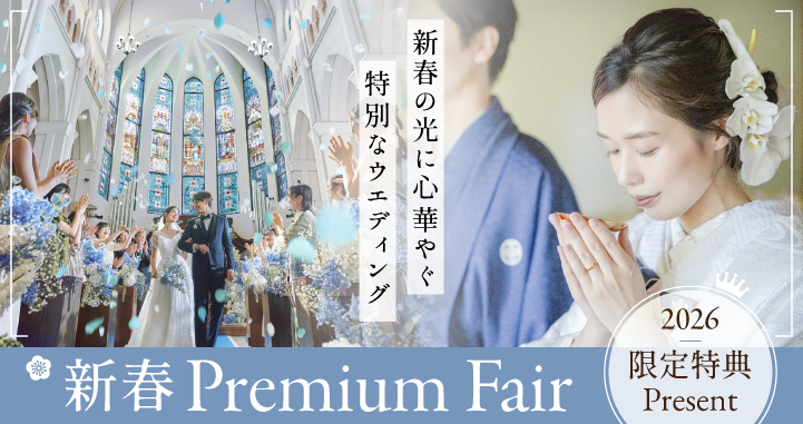 【新春Premium fair】1月限定特典☆青の大聖堂挙式体験&豪華コース試食×憧れドレス試着体験
