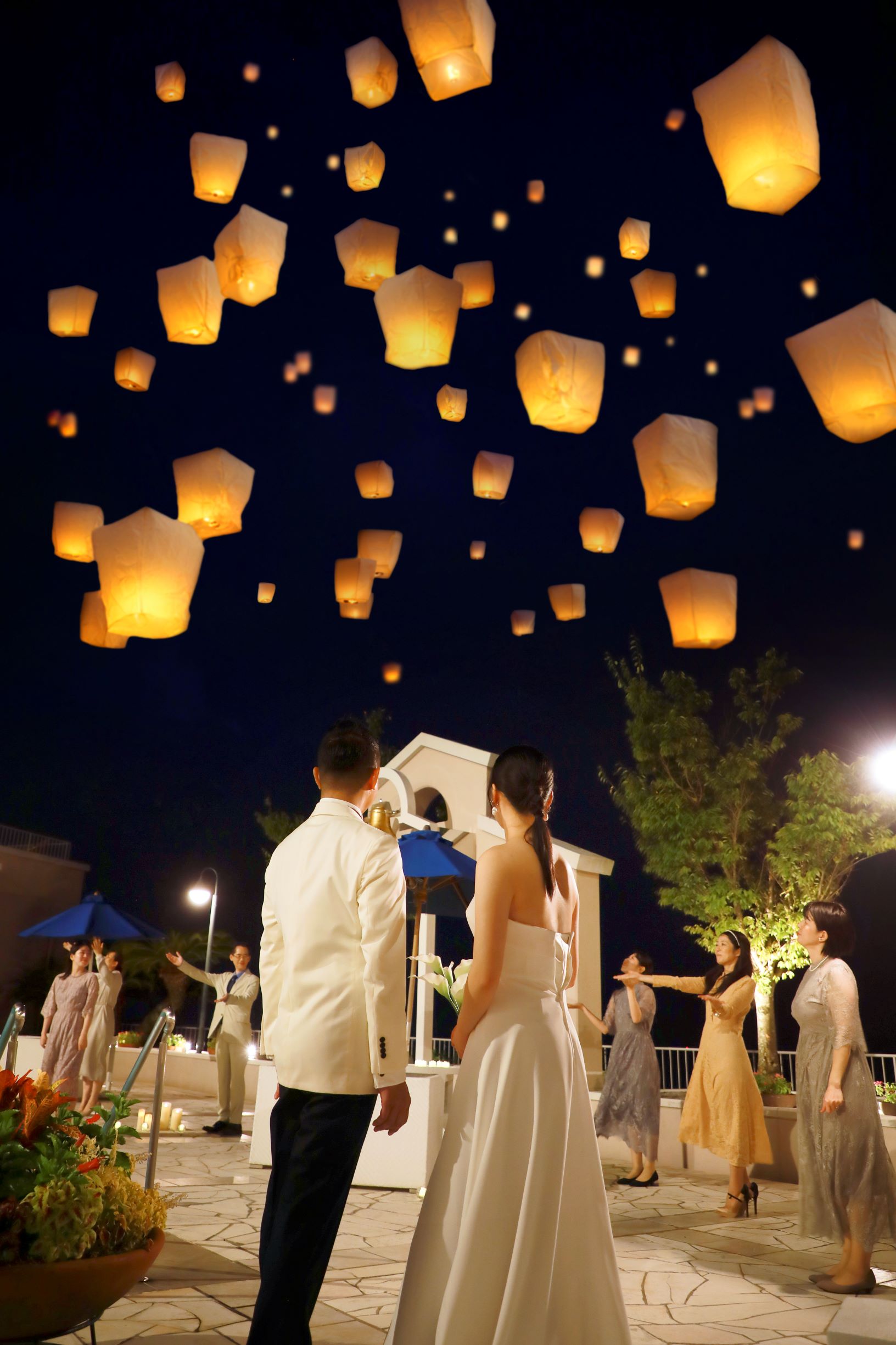大切な人たちに囲まれ、特別な一日を。弓張の丘でしか感じることの出来ない最高のロケーション。誰もを魅了する最高の景色をさらに演出するランタン。いくつものランタンが弓張の空を彩ります。いつまでもゲストの記憶に残る最高の一日を演出いたします。