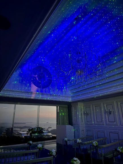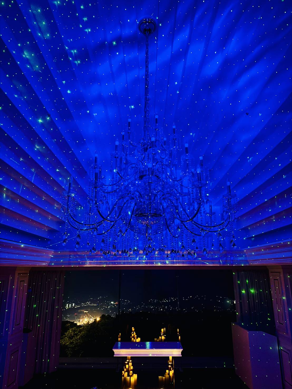 幻想的な星空の中、美しく雄大な眺望へ続くバージンロードを